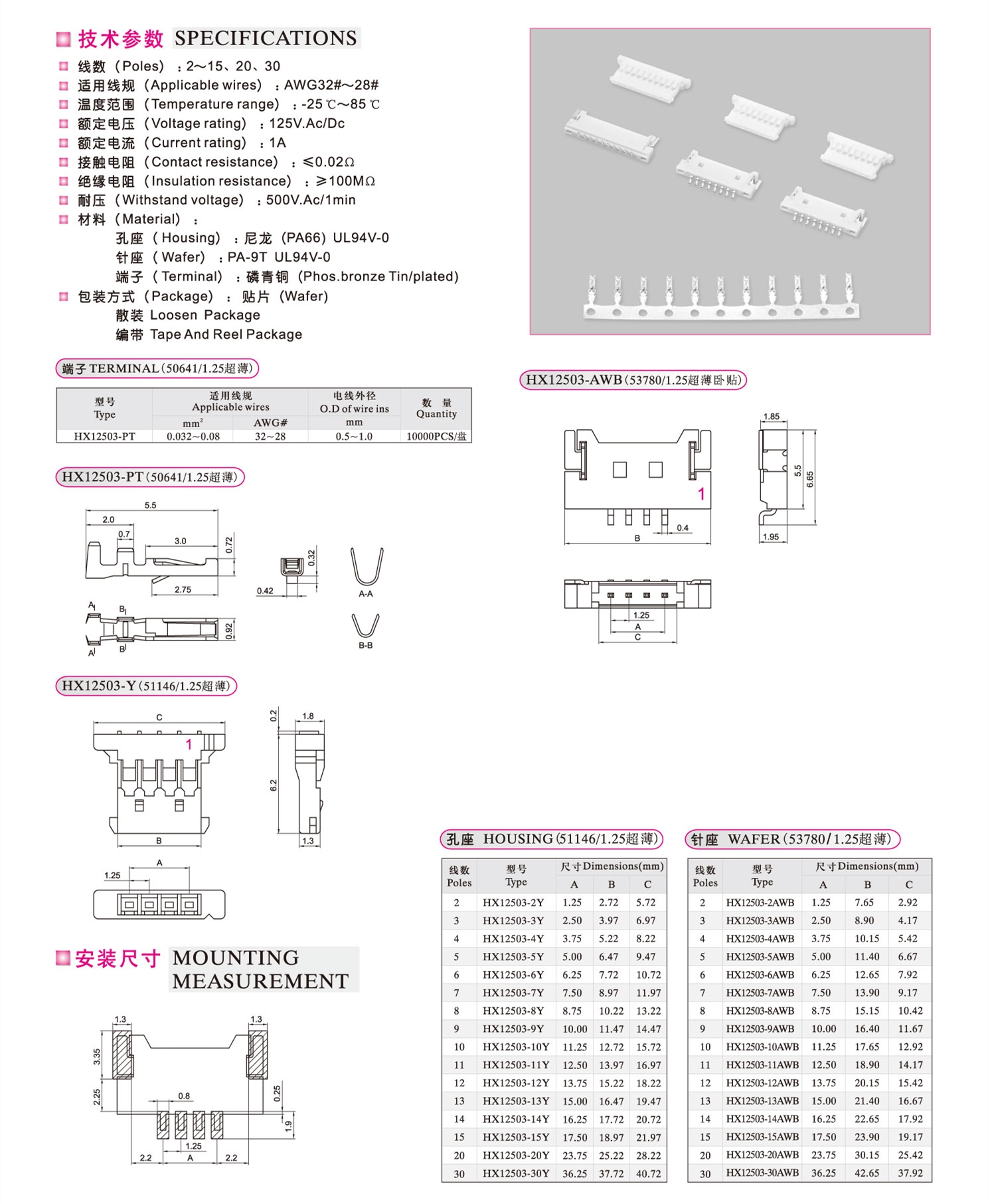 孟州HX12503-(1.25超薄 SMT/51146、53780)- 贴片式连接器(1.25mm)
